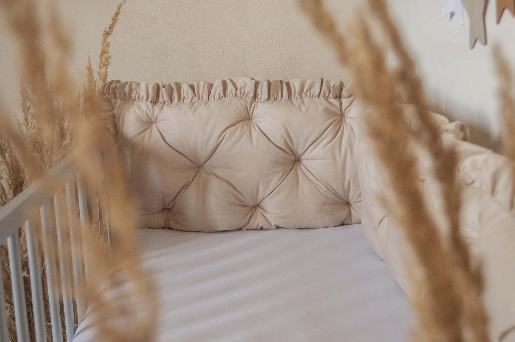Ochraniacz pikowany 4 panele 30x60 cm do łóżeczka 120x60 z falbankami BEŻ