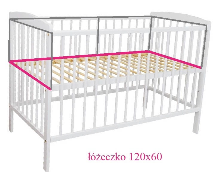Uwaga dotycząca bezpieczeństwa! Ochraniacz należy używać wyłącznie zgodnie z jego przeznaczeniem. Nie chroni przed upadkiem. Nie służy do przykrywania ani leżenia na nim. Ochraniacz zawsze musi być przywiązany do szczebelek łóżeczka, pod żadnym pozorem nie może pozostać nie zamocowany. Sznurki muszą znajdować się po zewnętrznej stronie a wiązanie ma zostać wykonane na kokardkę lub supeł.