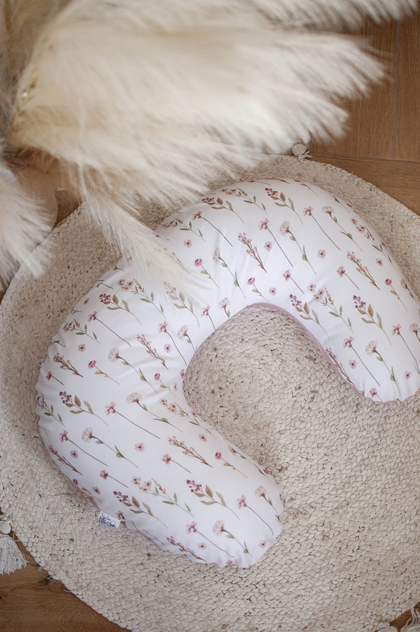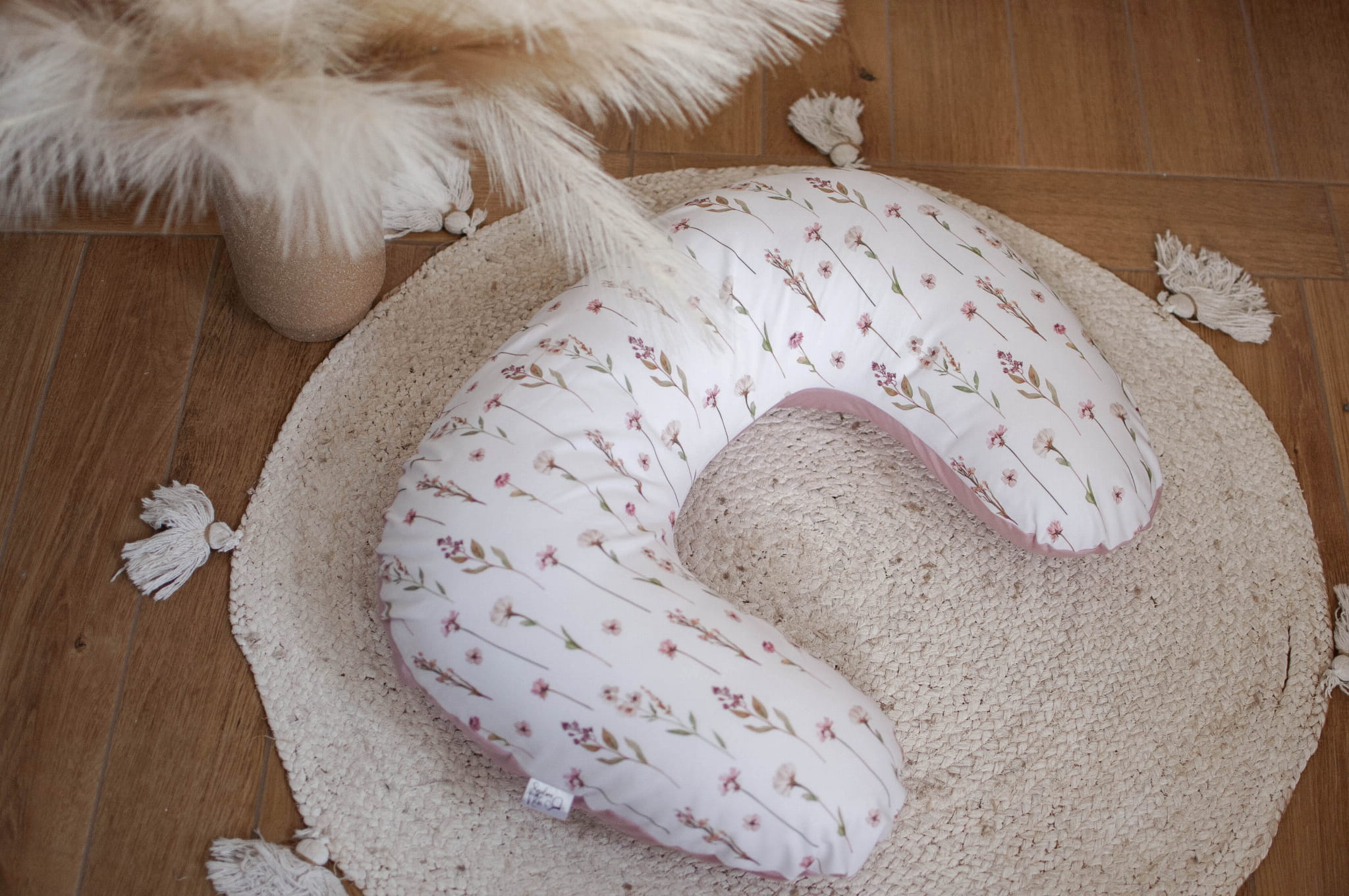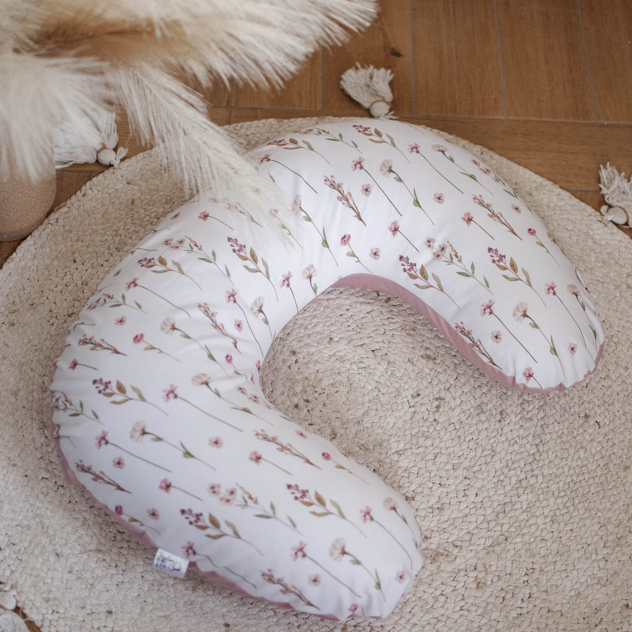 Poduszka rogal do karmienia BAZA + zdejmowana poszewka KWIATOWE ECHO+BRUDNY RÓŻ