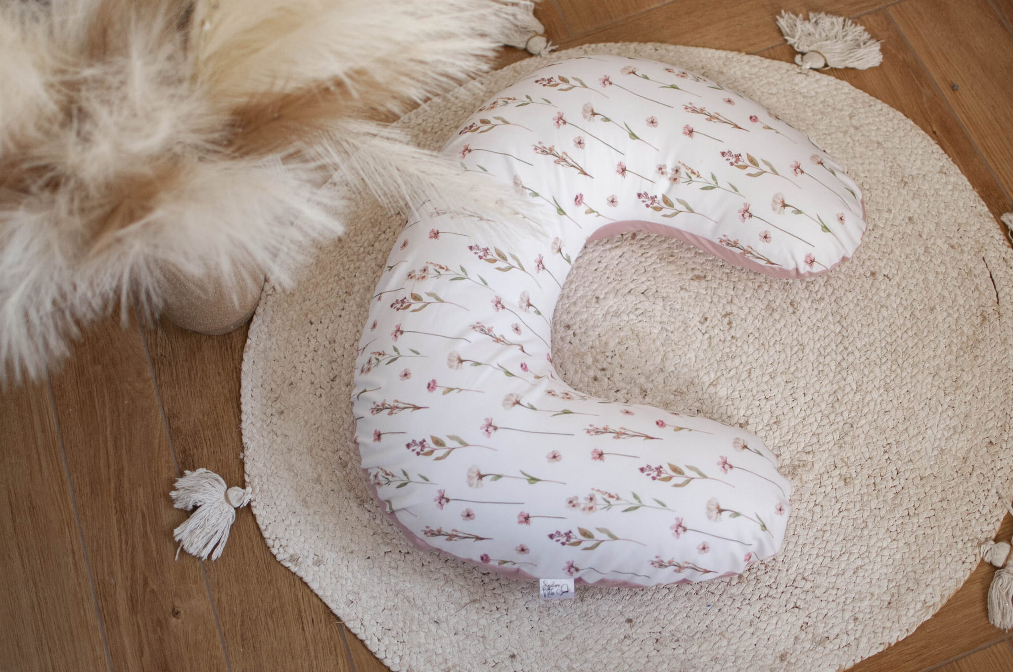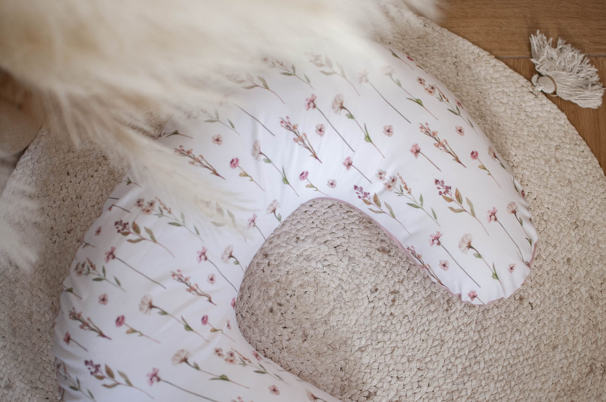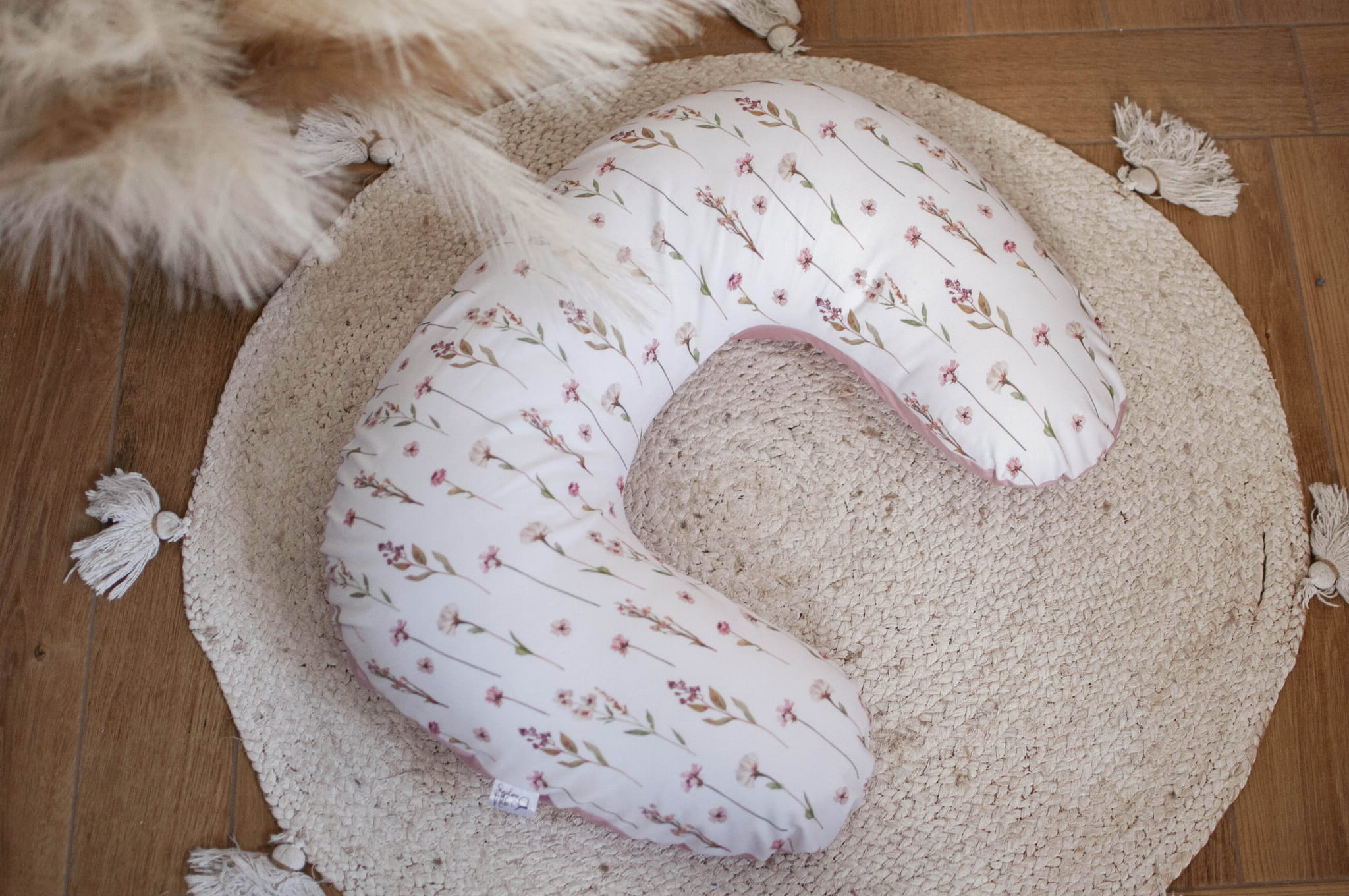 Poduszka rogal do karmienia BAZA + zdejmowana poszewka KWIATOWE ECHO+BRUDNY RÓŻ