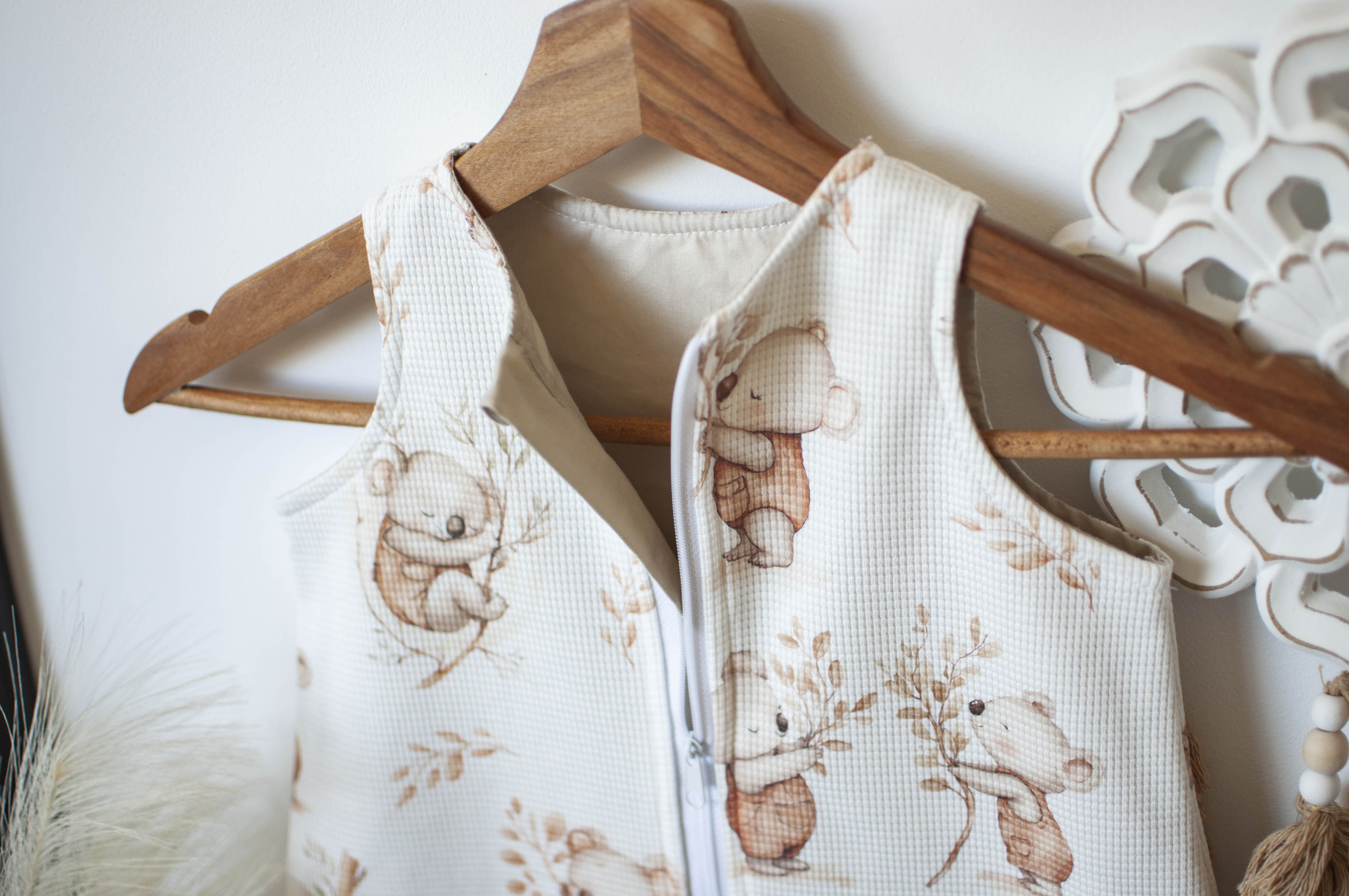 Śpiworek LETNI do spania 0-6 miesięcy KOALOWY ZAKĄTEK TOG 0,5 bez wypełnienia podwójny suwak