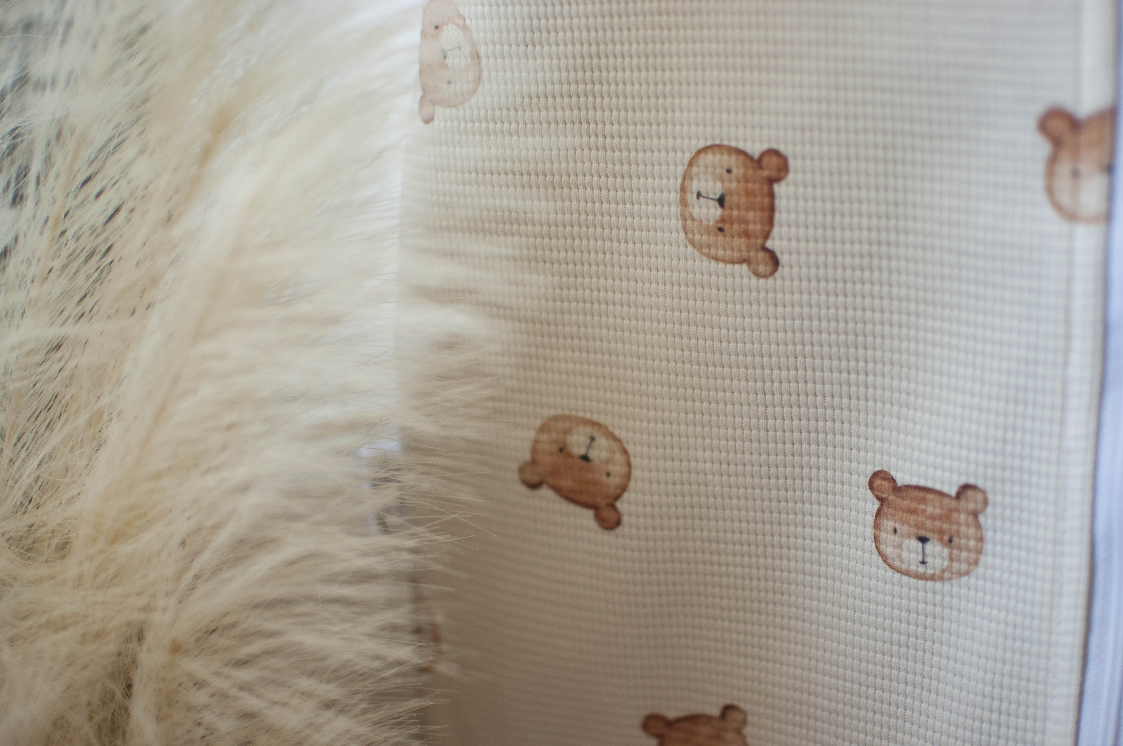 ***Bawełna podstawowa to najwyższego gatunku tkanina PREMIUM polskiej produkcji, zgodna z europejskimi normami jakości. Bawełna jest poddana dwóm dodatkowym procesom na etapie produkcji- SANFORYZACJI oraz WYGŁADZANIU. Dzięki temu zyskuje wiele wyjątkowych właściwości podnoszących jej atuty użytkowe jak i wizualne. Nie odkształca się, nie kurczy, pięknie sie układa, jest niesamowicie miękka, przyjemna, gładka i gęsta a jej włókna widać dopiero z bliskiej odległości. Dodatkowym atutem wyładzania jest brak meszków co zapobiega kuleczkowaniu.*** - na zewnątrz milutki i przyjemny wafelek bawełniany dzianina w jakości premium z drukiem cyfrowym