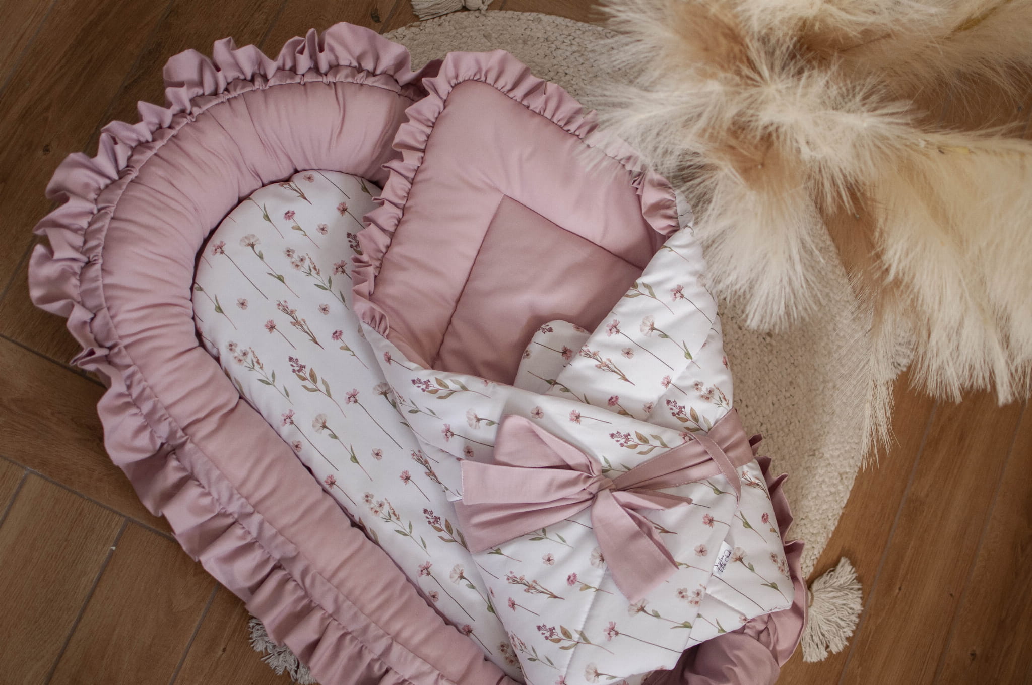 Wyprawka dla niemowlaka 12 elementów PREMIUM KWIATOWE ECHO+ BRUDNY RÓŻ