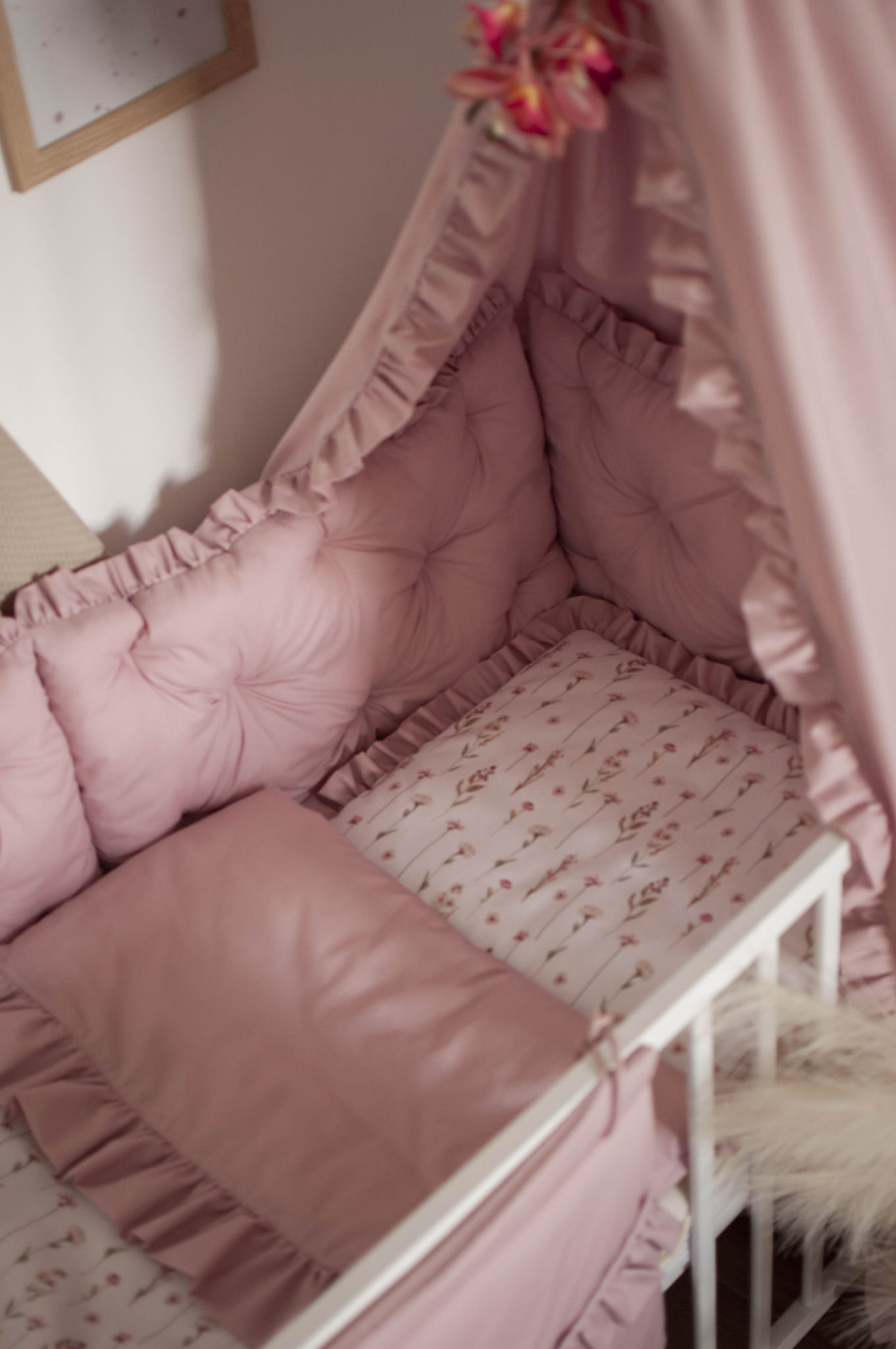 Zestaw nie zawiera gąski, prześcieradła i stelaża do baldachimu oraz dekoracji.