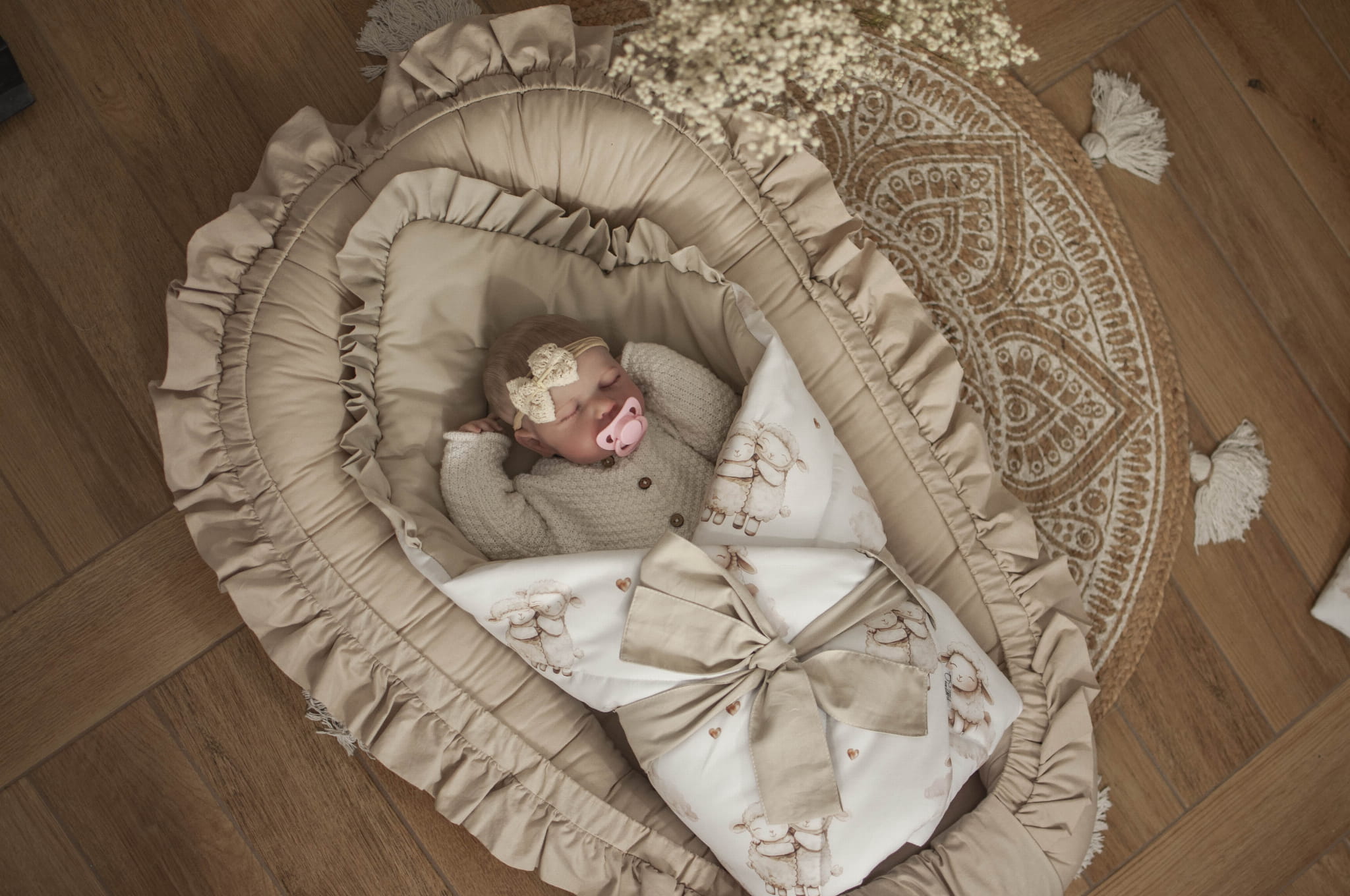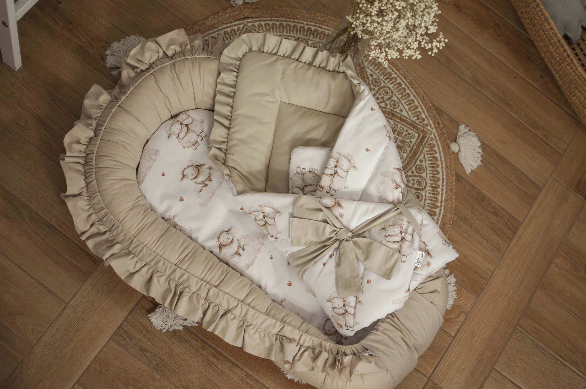 Wyprawka dla niemowlaka 12 elementów PREMIUM ZAKOCHANE OWIECZKI+ BEŻ