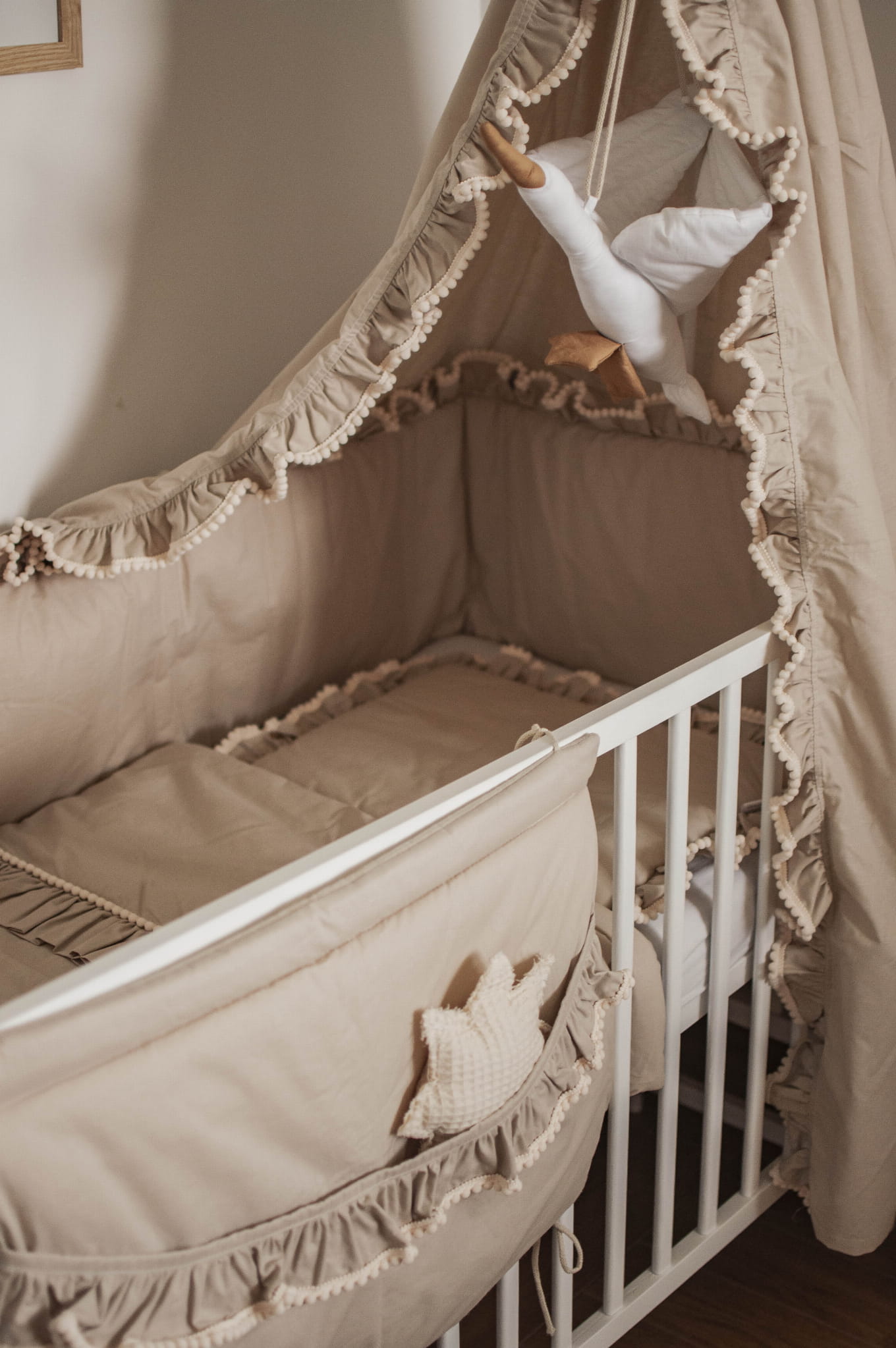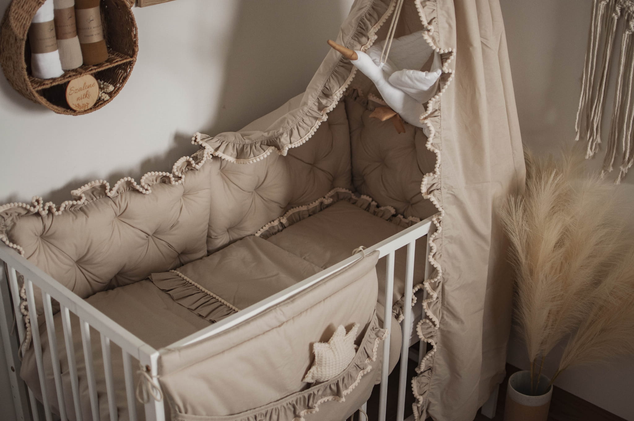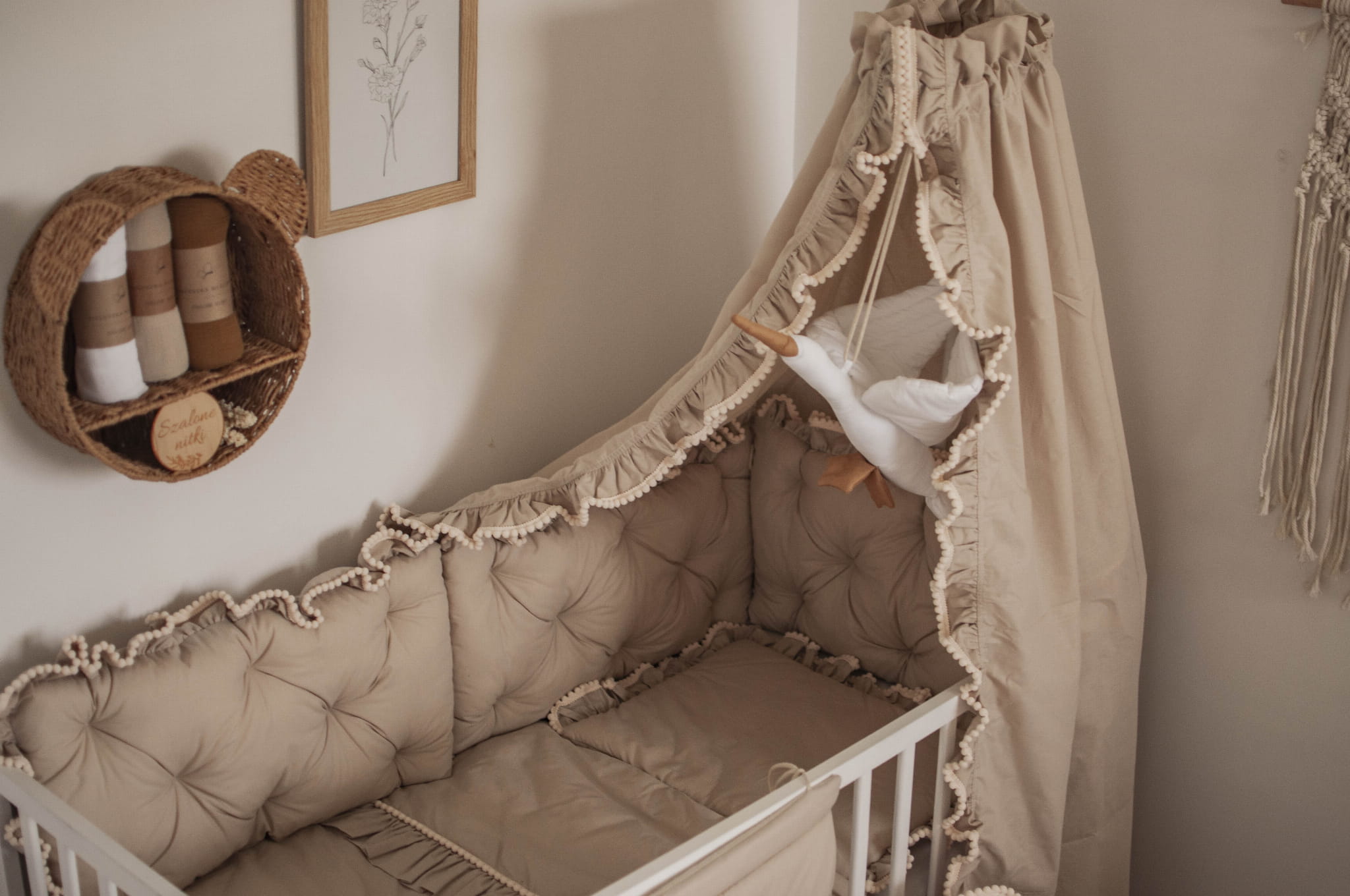 Ochraniacz należy używać wyłącznie zgodnie z jego przeznaczeniem. Nie chroni przed upadkiem. Nie służy do przykrywania ani leżenia na nim. Ochraniacz zawsze musi być przywiązany do szczebelek łóżeczka, pod żadnym pozorem nie może pozostać nie zamocowany. Sznurki muszą znajdować się po zewnętrznej stronie a wiązanie ma zostać wykonane na kokardkę lub supeł.