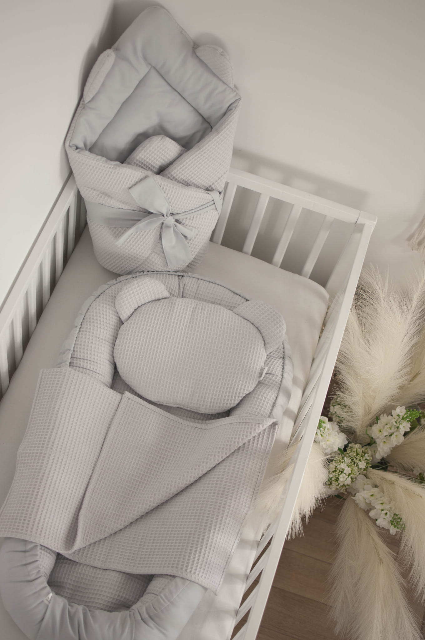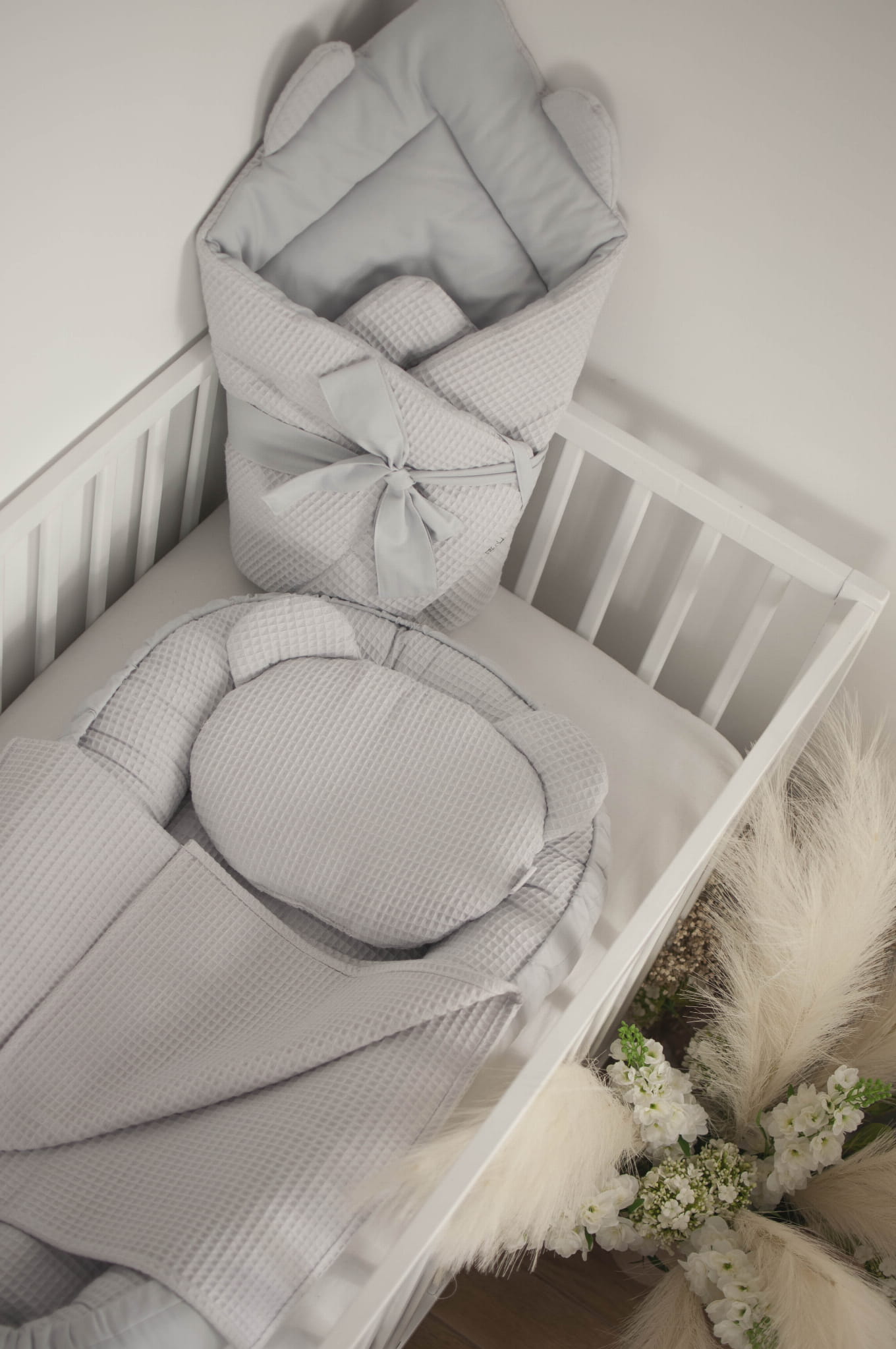 Wyprawka dla noworodka WAFEL zmiękczany 4 elementy SZARY