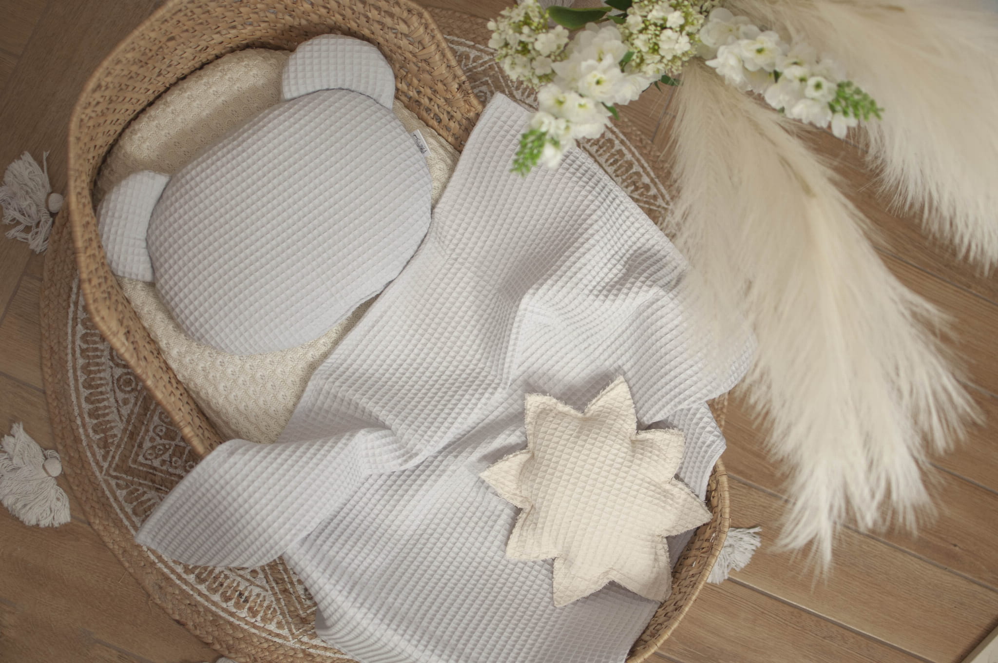 Kupując tutaj otrzymujesz KOKON+ROŻEK+ KOCYK+poduszka MIŚ bez dekoracji
