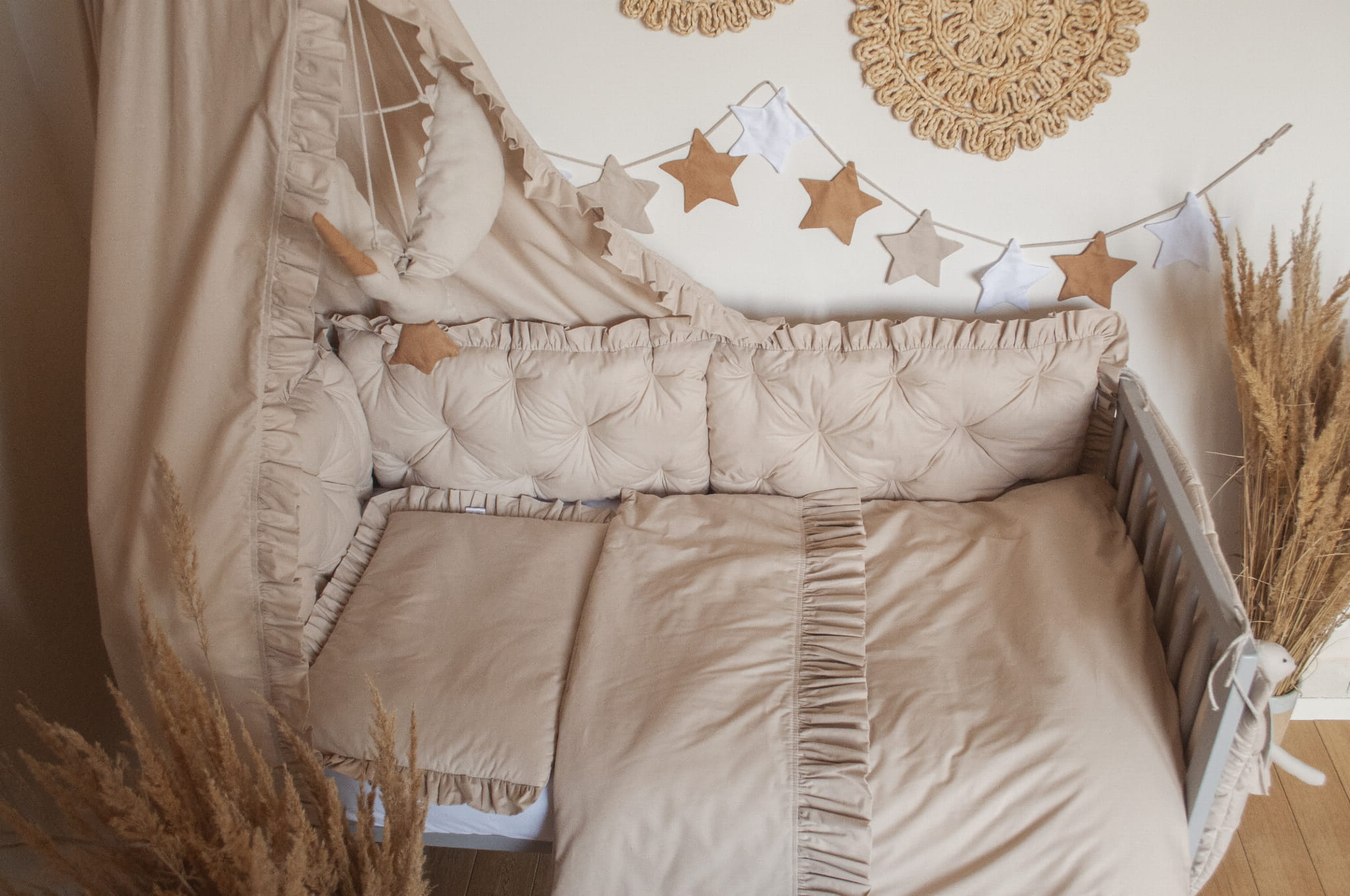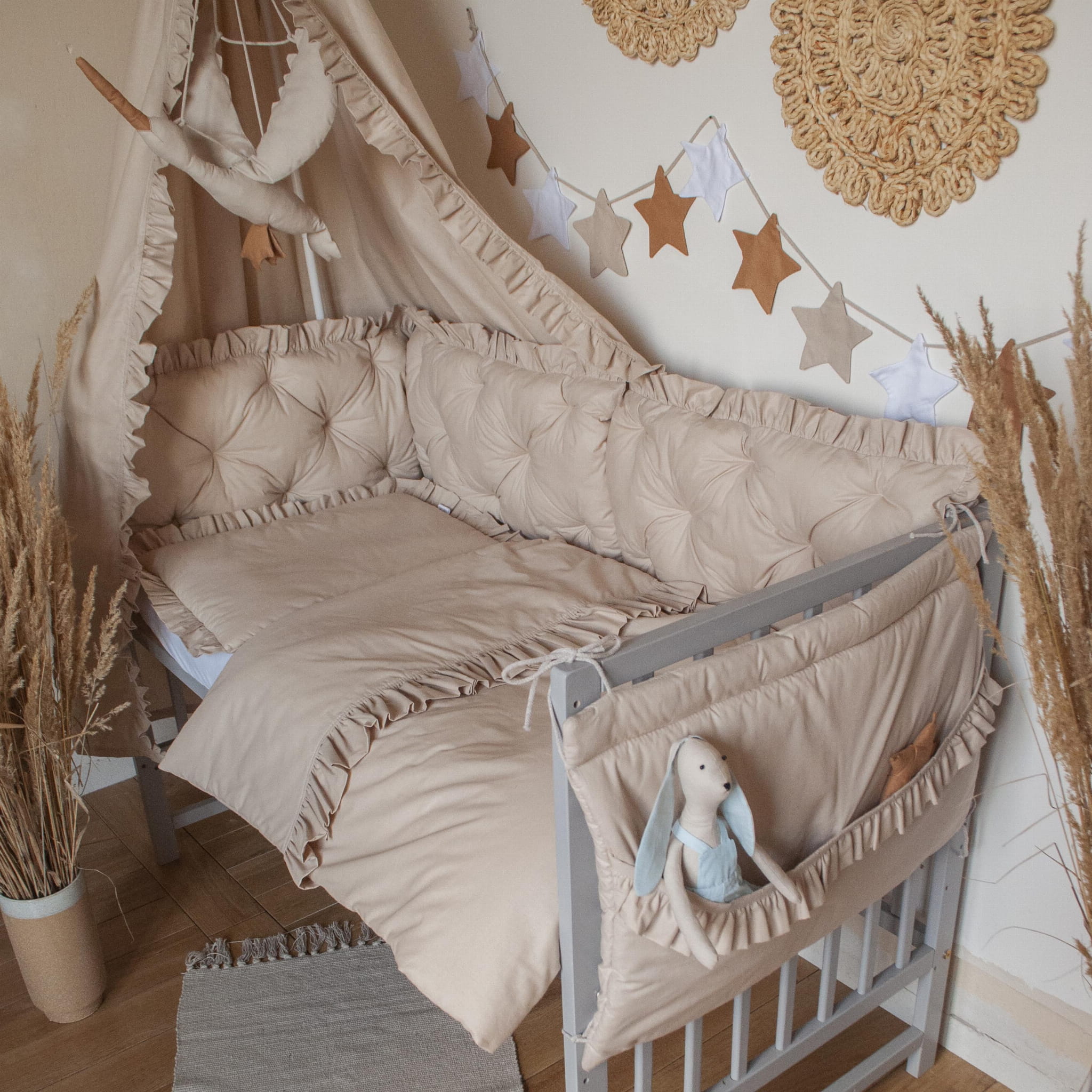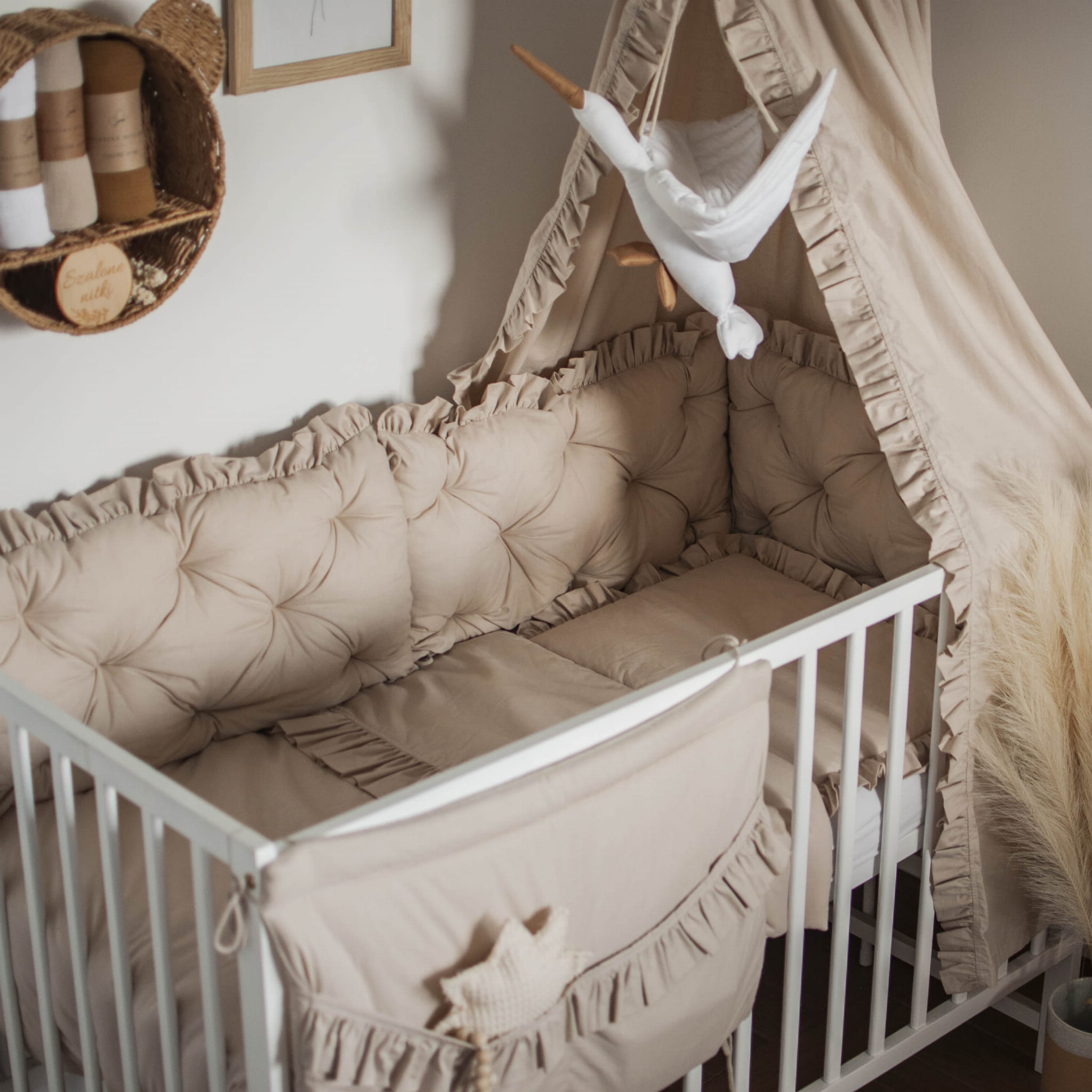 ZESTAW wyposażenie do łóżeczka 7 elementów BEŻ