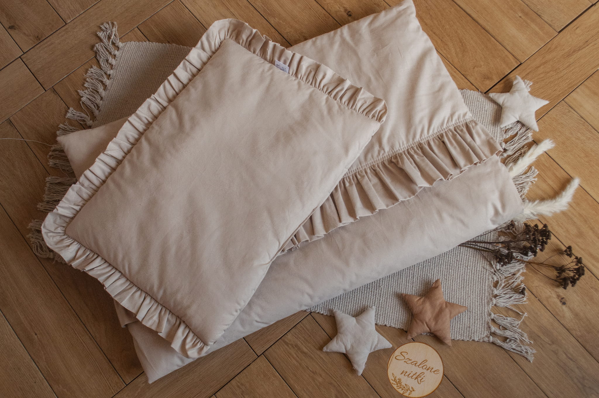 - falbanka na 3 bokach poduszki i w 1/3 frontu kołderki