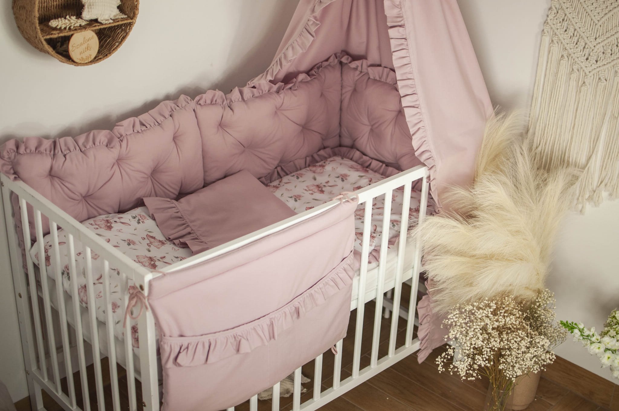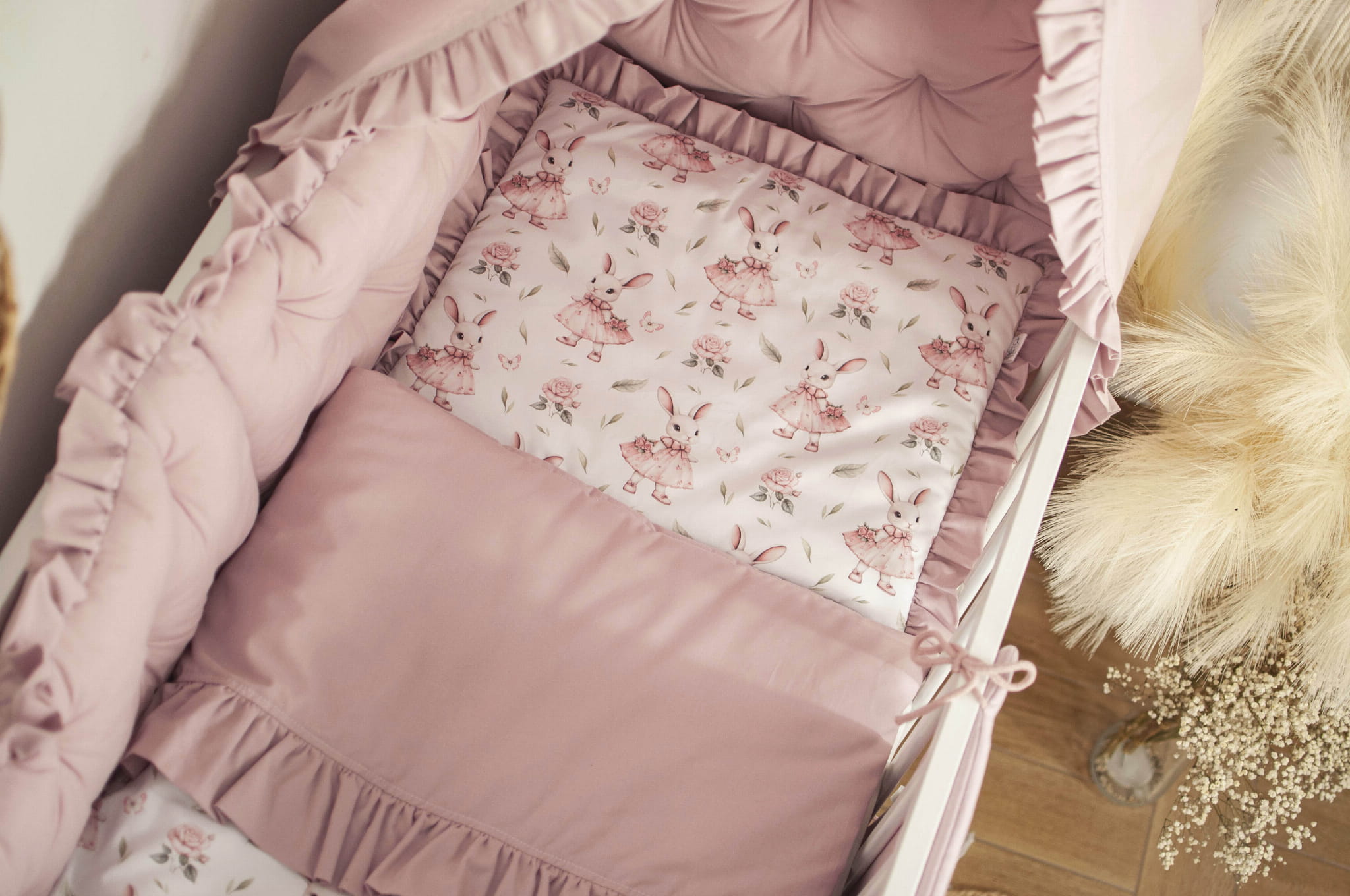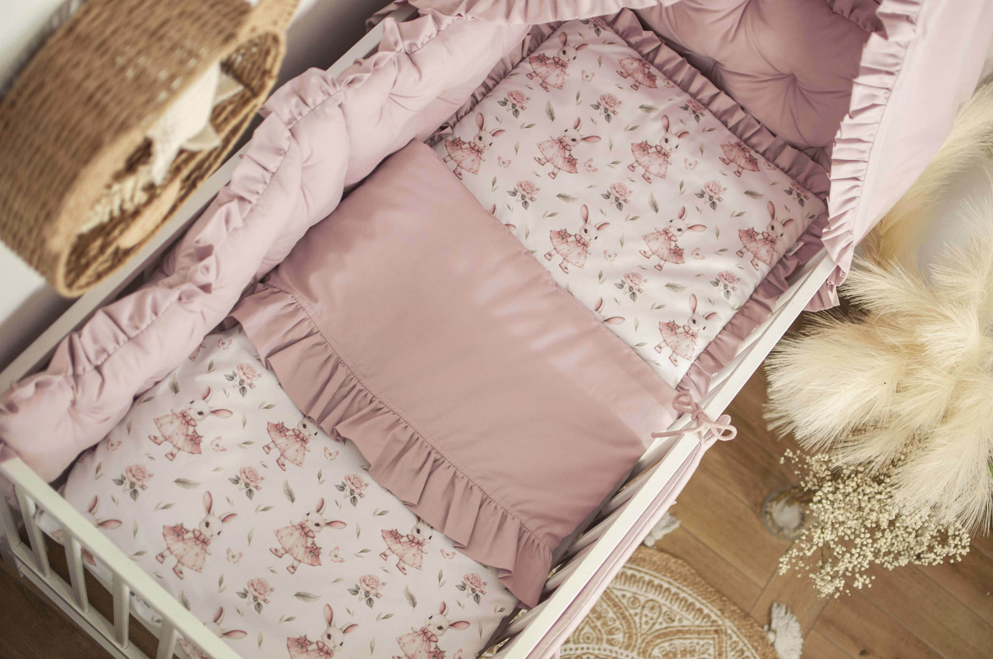 ZESTAW wyposażenie do łóżeczka 7 elementów PANI KRÓLIK + BRUDNY RÓŻ